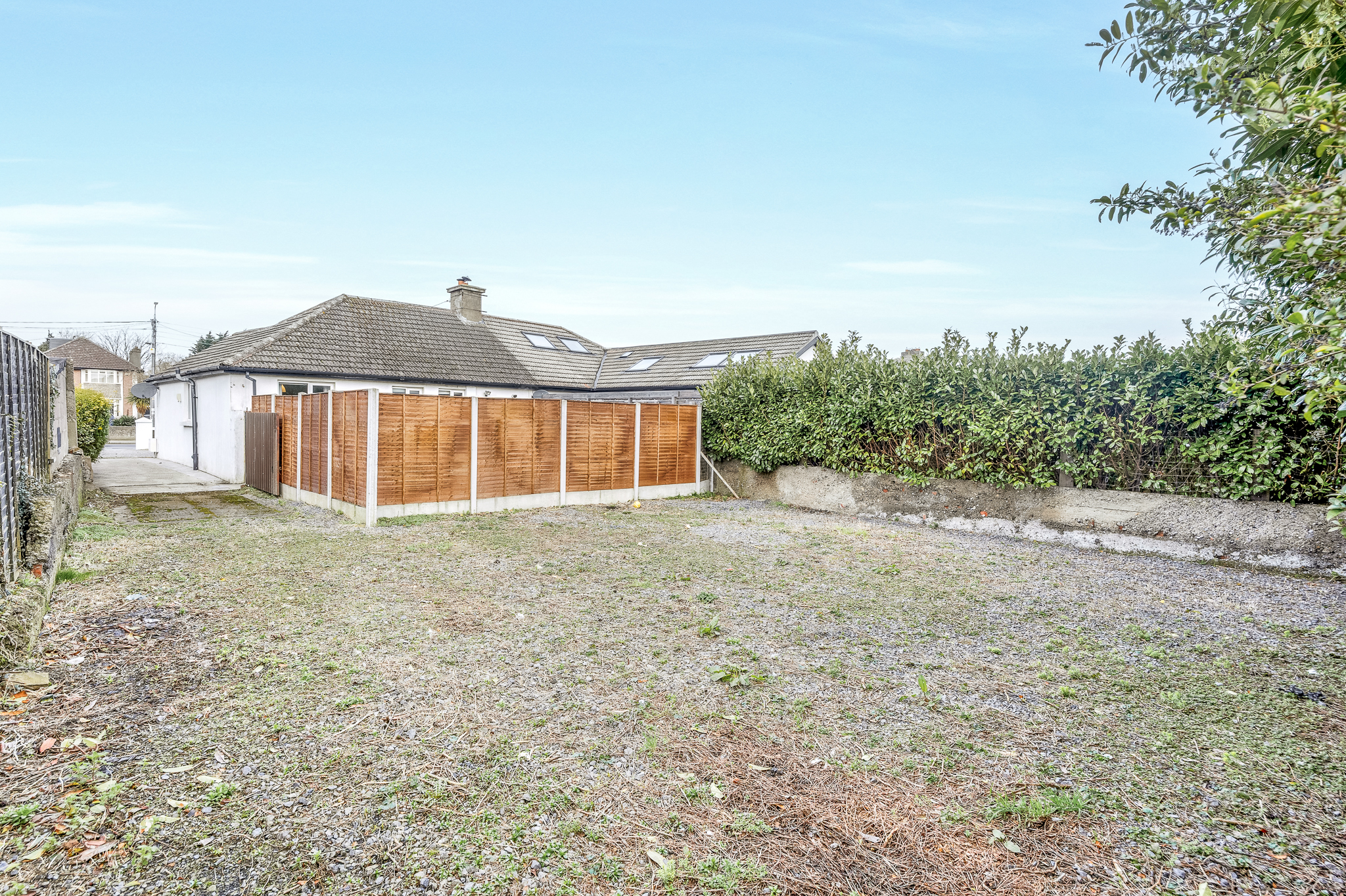 Additional rear plot separated by fencing with vehicular access and steel gate.